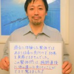 症状:腰痛 北村紀子様 今まで数多くの整体・カイロに通ってきましたが、ここは、全く別の施術方法で、 初めは不思議な感じでしたが、痛みが消えるのも早く、効果も感…